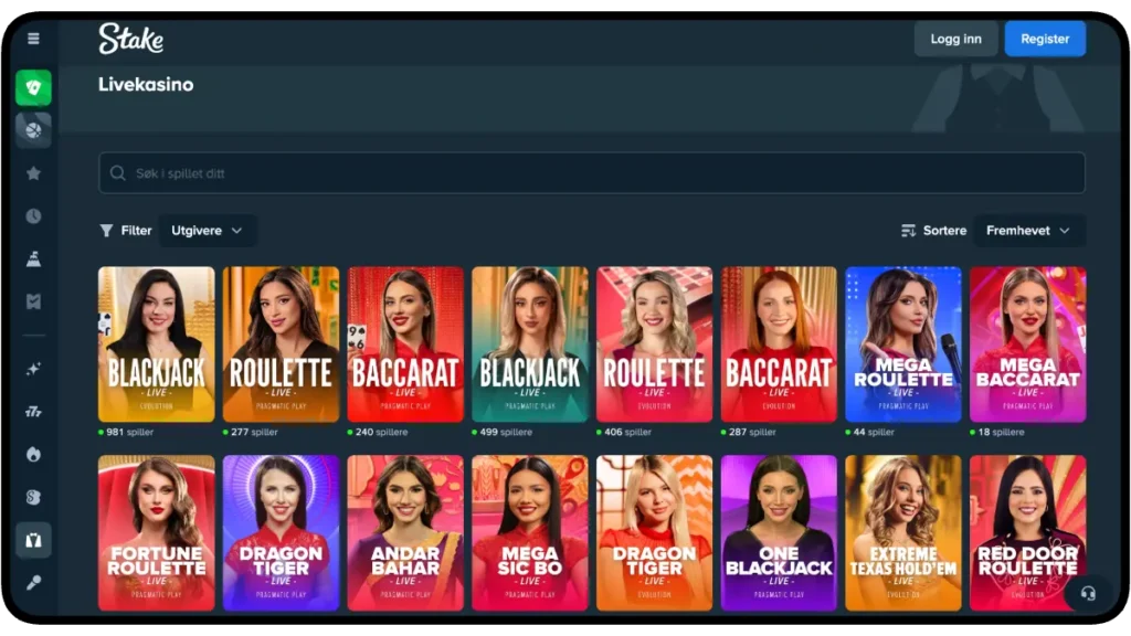 Med over 200+ Stake live spill med ekte dealer er Evolution den største leverandøren til denne delen av plattformen. Vi samarbeider tett med dem for å tilby både toppspillene deres og flere eksklusive titler. Derfor finner du utgivelser som Live Crash or Cash, Live Lucky 6 Roulette og Golden Wealth Live Baccarat kun hos oss.